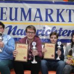 Einen souveränen Durchmarsch mit 7/7 gab es in der U16 seitens Lorenz Hofmann (SV Lauf). Der topgesetzte Vorjahreszweite distanzierte die Konkurrenz um satte zwei Zähler. Umso spannender war der Kampf um die weiteren Podestplätze. Die besten Karten hatte dabei der Setzlistenzweite Robert Stangl (SC Starnberg) nachdem er sich gegen Tizian Steiner (SC Bamberg), Lokalmatadorin Maria Schilay sowie Philipp Mark (SC Windischeschenbach) durchgesetzt hatte. Aber eine Niederlage in Runde sechs gegen Claudiu-George Anton (TV Parsberg) ließ die Konkurrenz gleichziehen. Robert bezwang in der letzten Runde auch die zweite Neumarkterin Daiana Burger und verwies dank der besseren Buchholz Tizian und Philipp auf die Plätze. Claudiu-George wurde Fünfter dank der besseren Viertwertung vor Maria.