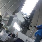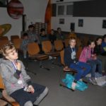 Anschließend ging es zur Sternwarte Neumarkt, wo uns der 1.Vorsitzende Andreas Leonhardt erwartete, der schon 2012 den Teilnehmern der 1.Offenen Mittelfränkischen U8 EM viel interessantes über den Jupiter erzählt hatte. Diesmal ging es in erster Linie über unser Sonnensystem, wobei er es den Kindern selbst überließ Fragen zu dem zu stellen was sie am meisten interessierte. Und da sprudelten die Fragen nur so heraus und Andreas nahm sich viel Zeit die Gefräßigkeit von Schwarzen Löchern zu erläutern und Gedankenansätze zu diskutieren, inwieweit die Marsroboter denn das vorhandene Gestein zum Schutz vor Staubstürmen nutzen könnten. Viele Bilder, Animationen sowie ein Modell zur Demonstration der Planetenbewegungen in unserem Sonnensystem veranschaulichten seine Informartionen. Im Anschluss ging es noch hoch in die Kuppel und jeder durfte einen Blick durch das Teleskop auf den Mond werfen, der dank der lückenhaften Wolken zu sehen war.