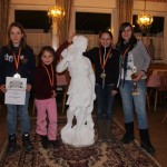 Vaterstetten hatte in der vorletzten Runde gegen unsere Zweite den ersten Sieg eingefahren und ging als Außenseiter in das Duell mit der Ersten. Aber der Tag hat ja gezeigt, dass das überhaupt nichts heißen muss und es wurde natürlich spannender als es unsere Nerven eigentlich vertragen… Denn ausgerechnet jetzt ließ sich Fabienne vom schnellen Zugtempo ihrer Gegnerin anstecken mit der Konsequenz, dass sie nach drei Minuten völlig unnötig matt gesetzt wurde. Erschwerend kam hinzu, dass Eva und Marie jeweils einen Bauern weniger hatten. Dafür stand Maria besser undf eroberte bald eine Figur, aber wir mussten ja gewinnen und vorne tippte ich eher auf zwei Remis, denn der jeweilige Minusbauer blieb bei beiden bestehen. Doch dann kam die erhoffte Wende: die Gegnerin von Marie nahm im Turmendspiel einen zweiten Bauern, vernachlässigte aber ihre Grundreihe und somit kam Marie zum zweiten Mal zum Grundreihenmatt. Eva hatte aktives Figurenspiel und war im Angriff, so dass ihre Gegnerin ein Remisgebot annahm. Nun musste Maria ihre überlegene Stellung nur noch gewinnen, was sie gewohnt unaufgeregt erledigte. Nach dem Matt war die Freude bei unseren Mädels natürlich riesengroß, denn durch den 2,5:1,5 Sieg war der dritte Platz amtlich!