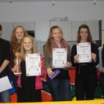 Anna zeigte ebenfalls eine gute Leistung und nur eine unglückliche Niederlage trotz Mehrmaterials in der letzten Runde verhinderte eine bessere Platzierung als Rang acht mit drei Punkten. Katharina und Jennifer ließen leider einige Chancen aus und beendeten das Turnier auf den Plätzen elf und zwölf mit je einem halben Punkt.