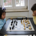 In der U10 lieferten sich die beiden Favoritinnen Maria Schilay und Jessica Du (SC Erlangen 48/88) ein spannendes Duell. In der Hinrunde kam Maria gut aus der Eröffnung und gewann auch einen Bauern, investierte dann aber zu viel Bedenkzeit im Bemühen den Druck aufrecht zu erhalten. Mit ablaufender Bedenkzeit hätte sie nun die Türme tauschen sollen um im Läuferendspiel zur Not ins Remis abzuwicklen, doch Maria überlegte weiter und fiel letztlich auf Zeit. Dagegen kam sie in der Rückrunde zu einem druckvollen Angriff und gewann souverän. Damit hatten beide nach sechs Runden fünf Punkte auf dem Konto und waren in allen Wertungen gleich, weshalb ein Entscheidungsspiel nötig war. Das Los bescherte Maria die schwarzen Steine und erneut kam sie gut aus der Eröffnung, gewann die Partie und verteidigte somit ihren Titel. Auch um den dritten Rang gab es eine Entscheidungspartie, da Daiana und Radena gegeneinander 1:1 gespielt hatten. Hier konnte sich Daiana durchsetzen und sicherte sich somit den verbliebenen Podestrang. Da Maria für die Bayerischen Meisterschaften bereits vorqualifiziert war, bedeutet dies obendrein die Quali zur Bayerischen.