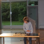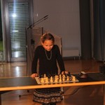 Danach wurde es noch einmal sportlich: drei Senioren forderten drei Jugendliche heraus um den integrativen Charakter von Schach zu demonstrieren. Erfreulicherweise hatte sich Bürgermeister Düring spontan bereit erklärt selbst in den Ring zu steigen. Er trat gegen Maria Schilay an, mit der er am Altstadtfest 2012 noch zusammen im Team gespielt hatte. Der Bürgermeister wählte die Sizilianische Verteidigung und hielt sich lange Zeit achtbar. Allerdings setzte er dann doch mehr auf den Zeitfaktor und büßte Material ein. Der Plan wäre beinahe aufgegangen, doch Maria setzte ihn mit acht Sekunden auf der Uhr matt. Einen schweren Stand hatte auch Wolfgang Heider gegen Lorenz Schilay und wurde ebenfalls matt gesetzt. Im Duell zwischen Erich Schilay und Daiana Burger kamen kaum Figuren vom Brett, so dass letztlich Daiana auf Zeit gewann, womit sich die Jugend glatt mit 3:0 durchsetzen konnte.