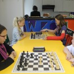 Wie gehabt startete der Neumarkter Mädchenschachtag mit einem Schnellschachturnier. Elf Spielerinnen kämpften in sieben Runden bei einer Bedenkzeit von 15 Minuten. Dabei forderte ein Trio der Schach-AG der Theo-Betz-Schule – Lisa Kölbl, Johanna Knipfer und Alexandra Röckl – die sieben Mädels des SK Neumarkt heraus, zudem war wie auch schon am letzten Mädchenschachtag mit Eva Bärtl eine weitere Nichtvereinsspielerin mit von der Partie. Und die Arrivierten hatten in der ersten Runde mitunter schon mächtig zu kämpfen. Daiana Burger hatte gegen Johanna bereits Material eingebüßt, rettete sich aber mit einem Mattangriff. Auch Fabienne traf auf großen Widerstand und brauchte fast ihre komplette Bedenkzeit ehe sie Lisa niedergerungen hatte. In der zweiten Runde kam es zum ersten „TBS-Duell“ in dem Johanna gegen Alexandra die Oberhand behielt. Fabienne und Maria Schilay holten ihren zweiten Sieg gegen Radena Burger bzw. Eva, wohingegen sich Daiana und Anna Heidner Unentschieden trennten.