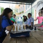 Nach fünf von neun Runden hat Max erstmals die Führung übernommen. Zu dem Spitzenquartett mit 4 Zählern gehört auch Lara auf Rang drei, Lorenz liegt mit 3 Punkten auf einem sehr guten sechsten Platz. Lukas und Maria liegen in der U12 mit je zwei Zählern auf den Rängen 22 und 23. Vinzenz hat in der U8 als Zwölfter ebenfalls zwei Zähler auf der Habenseite – etwas unter Wert, aber für sein erstes Turnier in der Größenordnung macht er seine Sache sehr gut. Eva fiel durch ihre unnötige Niederlage heute auf Rang sechs zurück.