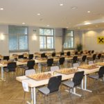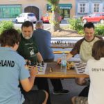 Der Vormittag war chillig, einzig Vinzenz durfte gegen Holger zeigen was er so drauf hat. Ansonsten fiel die Vorbereitung aus, da die Auslosung erst nach der Begrüßung veröffentlicht wird. Zwar kann man sich anhand der Teilnehmerliste ein Bild machen, aber da werden dann evtl. noch die ELO-Zahlen aktualisiert u.Ä.