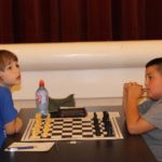 Besser lief es bei Lara und Lars, wobei letzterer seinen Punkt kampflos erhielt, da es die Turnierleitung für eine gute Idee hielt einen U10-Spieler, der in der U12-Meldeliste auftauchte, nach (!) der ersten Runde die AK wechseln zu lassen, so dass jetzt U10 und U12 mit Freilos spielen müssen… Lara öffnete Linien da ihr Gegenüber nicht rochiert hatte und kam zu einem durchschlagenden Angriff. Max stand mit dem Läuferpaar zwar etwas besser, musste aber am Ende im Turmendspiel mit ungleichfarbigen Läufern mit Remis zufrieden sein.