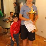 Bei Lorenz und Max war noch nicht viel passiert als der punktgleiche Konkurrent von Max um den Titel remisierte. Da Max mit ordentlichem Buchholz-Vorsprung in die Runde gegangen war, nutzte er die Gelegenheit zu einem Remisgebot, was Lorenz auch annahm. Denn selbst ein Sieg hätte bei den zu erwartenden Resultaten „nur“ zu Rang vier gereicht. Doch dann verlor überraschend der topgesetzte Tom O´Gorman und plötzlich war Lorenz Dritter und einzig der Österreicher Simon Prato konnte Lorenz noch überholen. Dazu musste er aber gegen Lara gewinnen und da waren wir eigentlich guter Dinge. Vor allem nachdem Lara eine Qualität und einen Bauern gewonnen hatte. Ihr Gegner opferte gleich noch eine Quali hinterher um mit dem Läuferpaar die Stellung kompliziert zu halten. Und da Lara nur noch vom Inkrement lebte war die Sache nicht so einfach, sie verlor schließlich vollkommen den Faden und wurde Matt gesetzt. Damit purzelte Lorenz vom Podest und konnte sich nun doppelt über den ausgelassen Gewinn gegen Lara vom Vortag ärgern, der für Rang drei gereicht hätte.