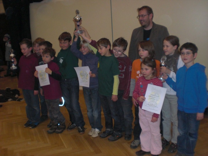 Die besten drei Teams mit Schulschachreferent Johannes Paar