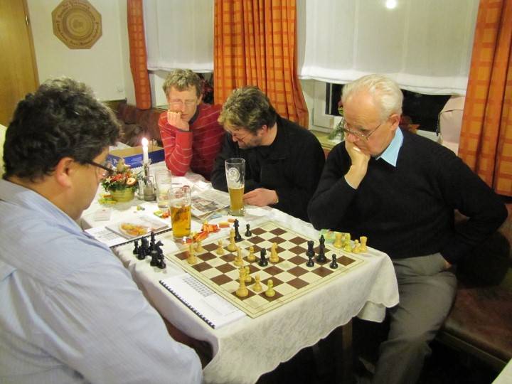 Wolfgang, Benedikt und Rudi konnten einfach nicht auf ein Schachbrett verzichten