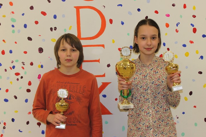 Siegerehrung U12: Lorenz Schilay (1.) und Sonja Kukulina (München Südost/2.)