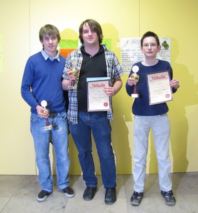 In den älteren Jahrgängen fiel die Teílnahme leider traditionell gering aus: für die U18 meldeten sich ganze vier Spieler, in der U20 gar nur Einer. Aus Mangel an Alternativen mussten wir diese Fünf mit der U16 spielen lassen, die es immerhin auf 19 Teilnehmer brachte. Den Gesamtsieg sicherte sich hierbei Lukas Tong (SC Erlangen) vor Constantin Müller (SC München Südost) und Florian Walter (SV Lauf). In den getrennten Wertungen bestand das Podium aus Lukas Tong (6), Samir Askri (SG Siemens Amberg/5) und Andreas Stadler (SC München Südost/4,5) in der U16 sowie Constantin Müller (5,5), Florian Walter (5) und Dennis Adelhütte (SC Erlangen/4,5) in der U18/20.