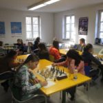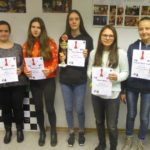 Immerhin ein Fünferfeld gab es in der U16, wobei das Los Maria gleich in der ersten Runde das Duell mit der topgesetzten Lisa Adelhardt (SC Erlangen 48/88) bescherte, mit der sie vor zwei Wochen noch Seite an Seite bei der DVM für die Erlanger U20-Mädchenmannschaft gekämpft hatte. Im ausgeglichenen Mittelspiel unterlief Maria ein taktischer Überseher, der einen Bauern kostete. Allerdings hatte Maria im Endspiel noch gute Remischancen, bis sie nochmal eine heraufziehende Taktik nicht auf dem Radar hatte, wonach Figur und Partie verloren war. Nach einer längeren da spielfreien Mittagspause gewann Maria einen Bauern und später die Qualität. Am nächsten Tag hatte Maria ebenfalls einen Mehrbauern, aber der gegnerische Turm kam auf die Grundreihe. Um dem Dauerschach aus dem Weg zu geheh, gab Maria den Bauern zurück und tauschte die Türme. Das Endspiel mit Springer gegen Läufer war ausgeglichen, aber nachdem die Leichtfiguren vom Brett gekommen waren, konnte Maria das Bauernendspiel mit einer Umgehung gewinnen. In der letzten Runde kam Maria zu einem druckvollen Angriff gegen den in der Mitte verbliebenen König. Da Lisa alle Partien gewinnen konnte, wurde Maria zum dritten Mal Vize-Meisterin. Ihre Bilanz mit sechs Titeln und drei zweiten Plätzen ist sehenswert, aber kurioserweise wird sie immer Zweite wenn Lisa in ihrer Altersklasse mitspielt, da sie im direkten Vergleich jedes Mal den Kürzeren gezogen hat.