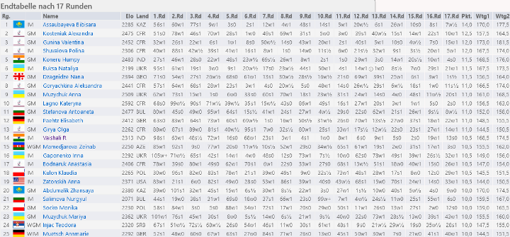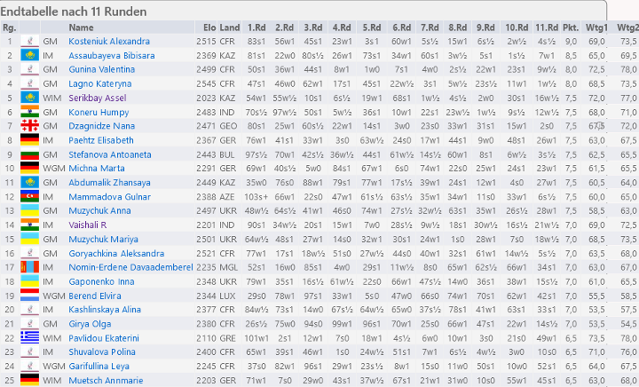Ergebnisse Schnellschach Frauen