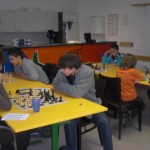 Mit der 2:0 Führung im Rücken durften nun nicht unsere beiden Spitzenbretter verlieren. Jonathan Helm bekam es mit dem letzten Tarrascher Neuzugang Tibor Surinya (seineszeichens U14 Europameister im Blitzschach) zu tun, Kevin Beesk traf auf Philipp Junk. Während Jonathan zu bunkern versuchte und immer passiv stand, hatte Kevin leichte Vorteile. Entschieden wurden beide Partien dann in der ersten Zeitnotphase als alle vier Spieler weniger als fünf Minuten auf der Uhr hatten. Jonathan war zunehmend unter Druck geraten und konnte die Stellung nicht mehr halten. Kevin hatte lange gute Remischancen und übersah in Zeitnot noch eine Variante die auf ein Dauerschach hinausgelaufen wäre. So eroberte Philipp zwei Bauern und Kevin musste sich geschlagen geben. Damit hatten wir unerwartet unseren ersten Punkt gegen NT geholt, wobei sogar ein Sieg drin gewesen wäre.