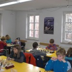 Durch das 2:2 blieb uns immerhin das Topteam von Nürnberg Süd in der zweiten Runde erspart und wir trafen auf Noris Tarrasch. Allerdings mussten wir nun auf Simon und Eva verzichten, die von Johannes Hierl und Maria Schilay ersetzt wurden. Auch in dieser Aufstellung bestand durchaus die Hoffnung gegen die Tarrascher was zu holen. Und eigentlich begann es auch gut, hatte Johannes doch nach wenigen Zügen eine Gewinnstellung auf dem Brett. Aber nach einem einzügigen Dameneinsteller war er chancenlos. Maria erlaubte ihrer Gegnerin ein Springeropfer auf f7, doch da diese in der Folge nicht konsequent genug weiterspielte bekam Maria mehrfach die Chance sich zu konsolidieren. Allerdings kennt Maria nur eine Devise und die lautet Angriff. Entsprechend verspeiste sie einen Turm und ließ ihren König im Feuer der gegnerischen Figuren. Als eine letzte Chance den König doch noch in Sicherheit zu bringen ungenutzt blieb und dieser mittlerweile auf b4 auftauchte, war das Matt nicht mehr zu verhindern. Timon kam gut aus der Eröffnung, tauschte dann aber viel ab. Dennoch war urplötzlich eine taktische Möglichkeit auf dem Brett, die ihm einen Damengewinn beschert hätte. Später war die Stellung ausgeglichen, bis Timon seine Figuren derart unglücklich postierte, so dass ein Turmverlust nicht mehr zu verhindern war. Dass Lorenz nicht seinen besten Tag erwischt hatte, zeigte zunächst auch die zweite Partie. Nachdem er einen frühen Bauerngewinn ausgelassen hatte, verschenkte er einige Tempi und büßte zwei Bauern ein. Doch Lorenz kämpfte sich zurück in die Partie, glich materialmäßig aus und stand im Endspiel sogar leicht aktiver. Der Gegner ließ aber nichts mehr zu, so dass auch ein vorübergehender Mehrbauer nichts brachte, da am Ende nur die Könige übrigblieben. Insgesamt hätte es ruhig ein Mannschaftspunkt mehr sein dürfen, mal sehen was in der letzten Doppelrunde noch zu holen ist.