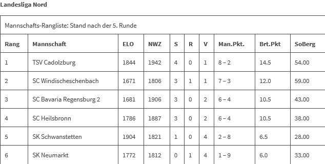 Da normalerweise erst ab Platz 11 abgestiegen wird, war der Klassenerhalt schon einmal gesichert. Zu Beginn erreichten wir ein glückliches 2:2 Unentschieden gegen den SC Windischeschenbach, wobei Mattias und Andi ihre kaputten Stellungen noch glücklich drehen konnten. In der Folge kassierten wir jedoch eine Klatsche nach der anderen., wovon besonders die Niederlage gegen Schwanstetten schmerzte. Jozef hatte schnell gegen Frank Leonhardt gewonnen, Mattias hatte eine gute Stellung gegen Frank Manthey, Andi kämpfte mit Mehrqualität gegen Lothar Cipra um den Sieg, für Jojo sah es an Brett 4 nicht so gut aus. Schließlich warf Mattias die Partie mit einem unbedachten Zug weg, und Andi musste froh sein, mit einem Remis davonzukommen.