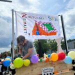 Es ist wieder Volksfestzeit in Neumarkt und der erste Höhepunkt war traditionell der Festzug mit 87 Gruppen. Auch wir waren erneut mit von der Partie, dabei aber erstmals bei unseren Teilnahmen seit 2007 mit einem neuen Problem konfrontiert: Regen. Ein kräftiger Schauer Samstagabend brachte schon einiges durcheinander und stärkerer Regen in der Aufstellung zwang uns zum Improvisieren. Doch dann hatte das Wetter ein Einsehen, die Sonne kam heraus und begleitete den Zug wie gewohnt durch die Innenstadt, beklatscht von über 20.000 Zuschauern.