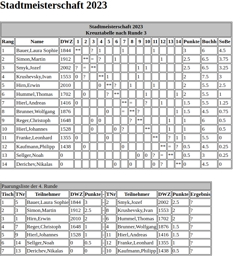 Stadtmeisterschaft 2023 Auslosung Runde 4