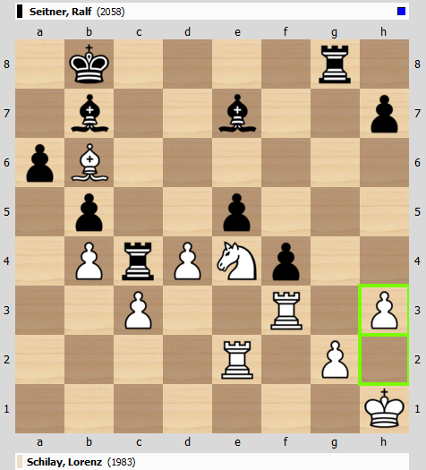 und Deckung von h7. Aber Lorenz hübsches Tg7! beendet danach die Partie,