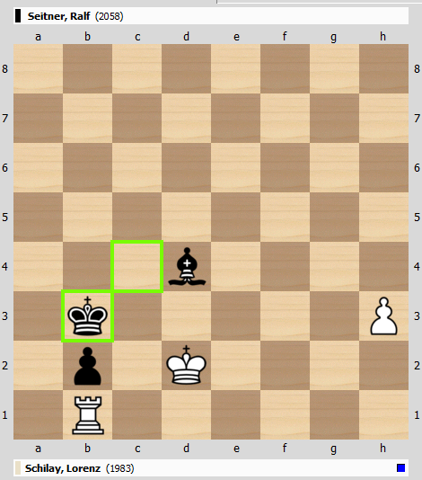 Nach Lorenz Fehler 34. h3? hätte Ralf mit dem schwierigen 34…Tg6!