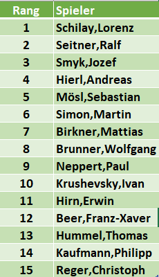 Somit können wir also Lorenz Schilay zum ersten Pokalsieger des Schachklubs Neumarkt ausrufen, gleichzeitig der einzige Spieler, der im Turnier ungeschlagen blieb! Herzlichen Glückwunsch!
