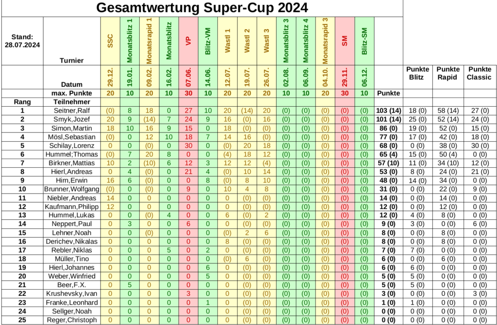 Nach dem Pokalturnier und dem Wastl-Cup hat sich in der laufenden Super-Cup-Tabelle so einiges getan: