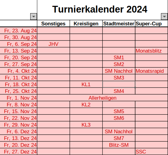 UPDATE: Update Turnierkalender 2. Halbjahr 2024