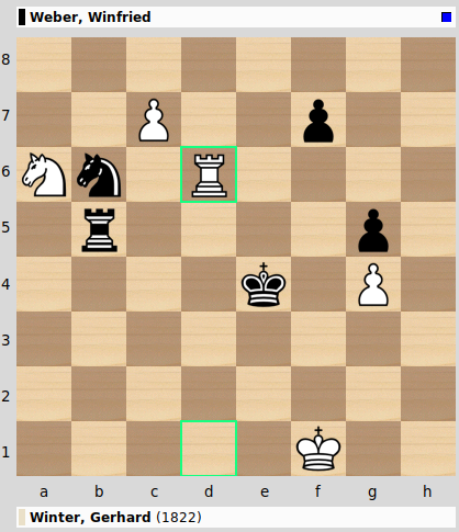 In die Zwischenzeit war Winfried Weber an Brett 2 mit zwei Bauern in Rückstand geraten, weil er einen Bauern geopfert und einen verloren hatte, so dass hier zunächst mal eine unerfreuliche 3 gegen 1 Bauernmehrheit gegen Winnie stand.