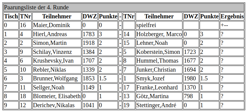 Stadtmeisterschaft Auslosung Runde 4