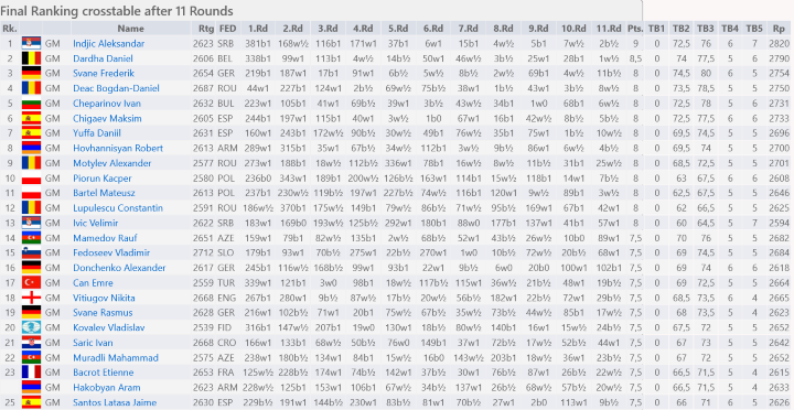 Frederik Svane kam ungeschlagen durch das Turnier und wurde hinter Aleksandar Indijc (9) und Daniel Dardha (8,5) mit 8/11 Dritter. Alexander Donchenko und Rasmus Svane belegten mit je 7,5 Punkten die Ränge 16 und 19, womit sie sich für den World Cup 2025 qualifizierten. Für Matthias Blübaum (40.) und Dmitrij Kollars (45.) waren die sieben Zähler zu wenig für die 20 Quali-Plätze. Starke Resultate erzielten #132 Marius Fromm (7/63.), #119 Marius Deuer (6,5/79.), #168 Tobias Kölle (6/114.) und 184. Magnus Ermitsch (6/122.).