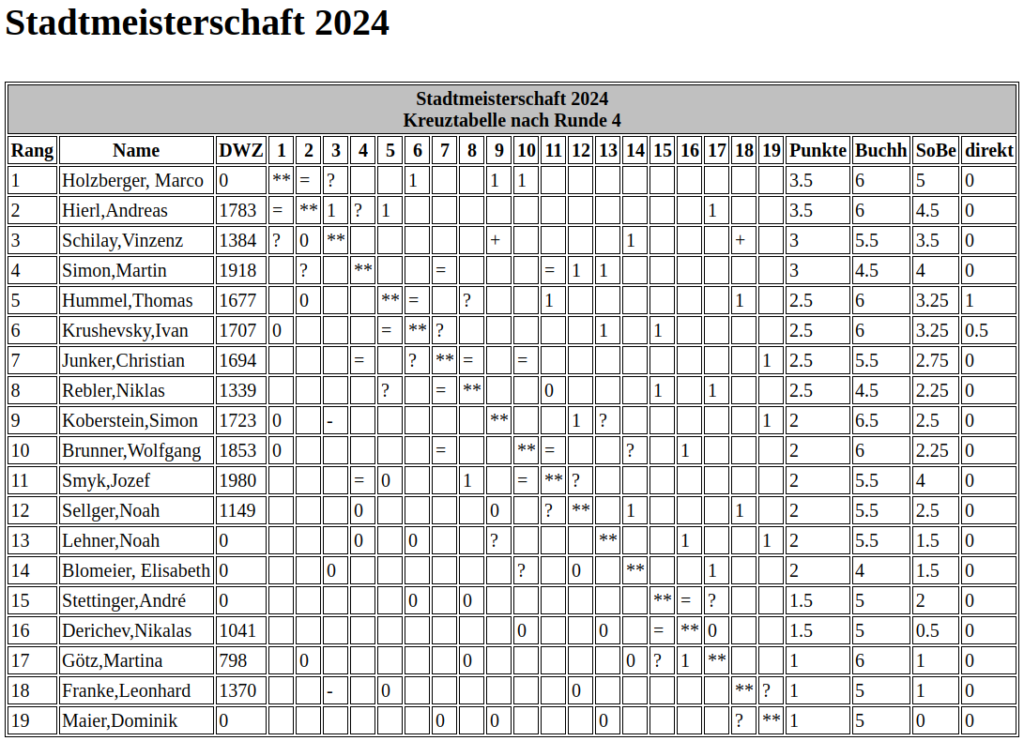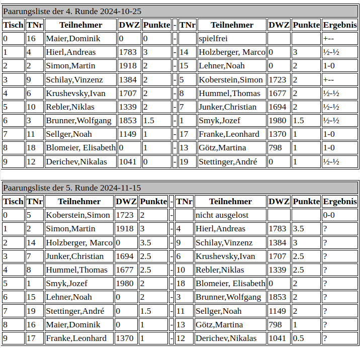 Die 5. Runde findet am nächsten Freitag, 15.11.2024 statt!