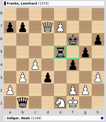 Eine wilde Achterbahnfahrt war dagegen die Partie zwischen Noah Sellger und Leonhard Franke mit weit vorgerückten Freibauern, „ewigen Fesselungen“, Dauerschachdrohungen, und letztlich hätte jeder der beiden die Partie frühzeitig für sich entscheiden können.