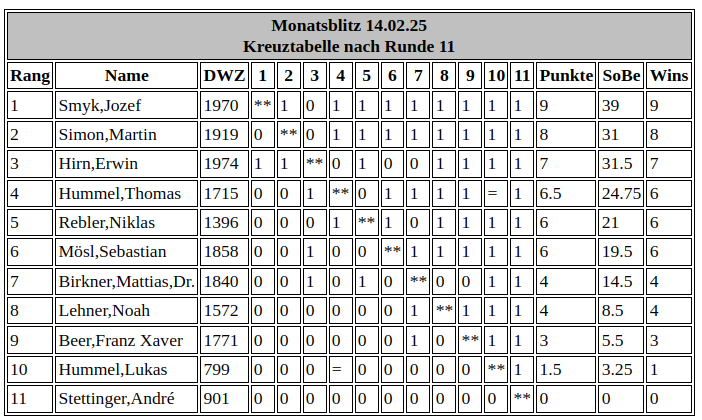 Am kommenden Freitag, 14.02.2025, findet das zweite offene Monatsblitzturnier des Jahres statt.
