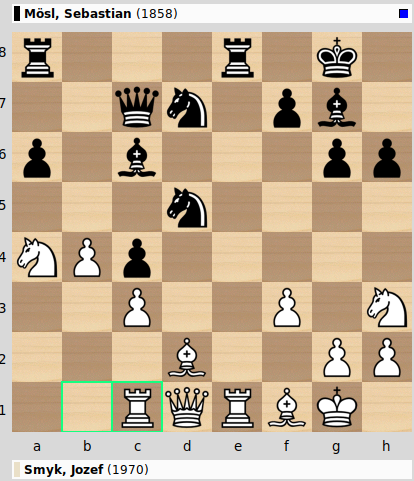 Sebastian kam als Schwarzer gegen Jozef deutlich besser aus der Eröffnung, wie das folgende Diagramm zeigt: