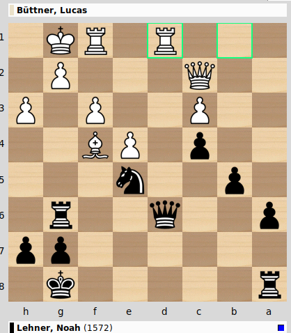 weil er im Schluss auf das Traumfeld d3 springen kann. Noah zog allerdings 24…Df6?,