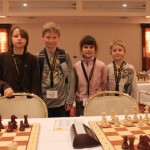 Eigentlich hatten wir erwartet als erster der zweiten Setzlistenhälfte gleich gegen die top gesetzte Mannschaft anzutreten. Glücklicherweiße wurde die Startreihenfolge nochmal geändert. Somit traten wir gegen die dritte Mannschaft der Schachzwerge Magdeburg an. Josef zeigte eine sehr gute Partie und konnte den ganzen Punkt heimfahren. Daiana musste sich ihrem Gegner geschlagen geben. Sebastian zeigte eine gute Partie, in der beide Kontrahenten ihre Gewinnchancen hatten. Leider konnte sein Gegner aber etwas früher mattsetzen. Somit musste Lorenz den von ihm schon erwarteten Sieg heimfahren, was ihm dann auch gelang. Somit starteten wir mit einem Mannschaftsremis ins Turnier.