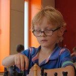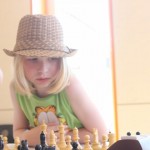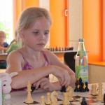 Vor der dritten Runde rief Turnierleiter Sebastian Mösl den Teilnehmern nochmal ins Gedächtnis, wie wichtig doch die Rochade sei und das man in der Eröffnung auf f2 bzw. f7 besonders aufpassen müsste. Eineinhalb Minuten später war die erste Partie beendet, da Radena Brian auf – wer erräts? – f7 matt gesetzt hatte. Im weiteren Verlauf setzten auch Raphael und Tobias auf f7 bzw. f2 matt. In der folgenden Runde wies Sebastian nicht mehr darauf hin und kurioserweise gab es kein Matt mehr auf diesen Feldern… Indes gab es an Tisch eins ein Felix-Duell. Nachdem eine Kontroverse darüber wer denn nun am Zug gewesen sei geklärt werden konnte behielt Felix H die Oberhand. Josef hatte gegen Lea schon eine Figur weniger und obendrein fuhr Lea ihre Schwerfiguren bedrohlich am Königsflügel auf. Kurz darauf meldete jedoch überraschend Josef seinen Gewinn, da Lea wohl durch die „Felix-Diskussion“ derart aus dem Konzept gekommen war, dass die Partie schnell kippte. Tom erlegte den langrochierten König von Dominik auf der c-Linie und Amalia gewann gegen Berend einen ganzen Turm. Sebastian manövrierte Dame und Turm auf die h-Linie und konnte Melissa auf h2 matt setzen.