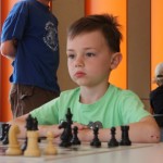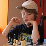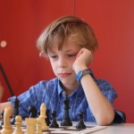 Josef und Felix H konnten beide die ersten drei Partien für sich entscheiden und trafen folgerichtig in Runde vier aufeinander. Josef kam zu einem gefährlichen Königsangriff der Felix einen Turm kostete. Danach schnürte er mit Dame und Springer den König ein und setzte mit seinem zweiten Springer unter Ausnutzung einer Fesselung Matt. Felix S hatte gegen Amalia eine Figur mehr und griff mit seinen Schwerfiguren die Königsstellung an. Aber Amalia verteidigte sich gut und schlug eiskalt zu als Felix seine Grundreihe entblößte. Raphael hatte gegen Lea am Ende gleich zwei Damen auf dem Brett und gewann. Dagegen ging bei Radena und Sebastian jeweils eine Dame verloren, was Tom und Dominik auszunutzen wussten. Brian setzte Levin auf der h-Linie Matt und Nese setzte ihre Schwester Melissa patt. Tobias hatte gegen Berend Dame gegen Turm mehr, im Turmendspiel blieben jedoch nur noch zwei Bauern übrig. Doch Berend gelang es den Nachteil wettzumachen und letztlich war nur noch jeweils ein Turm auf dem Brett. Damit lag nach dem ersten Turniertag Josef mit 4/4 an der Spitze. Dahinter lauerte ein Quartett mit jeweils 3 Punkten bestehend aus Felix H, Tom sowie Amalia und Raphael.