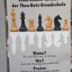 In diesem Schuljahr gibt es an der Theo-Betz-Schule in Neumarkt eine Schulschach-AG an der insgesamt 45 Schüler der 1. und 2. Klassen teilnehmen. Die Kinder wurden in drei Gruppen aufgeteilt die von Lehrkraft Sabine Goehrke sowie dem 1.Vorsitzenden des Schachklubs Neumarkt Sebastian Mösl geleitet werden. Zum Abschluss des Schuljahres hatte man beschlossen parallel zur in der Schule ausgetragenen 2. Offenen Mittelfränkischen U8 Meisterschaft erstmals ein Schulturnier durchzuführen. Am Samstag den 20. Juli war es dann soweit und 27 Kinder wollten unter den Augen vieler neugieriger Eltern zeigen was sie alles gelernt haben. Hinzu kamen noch 11 Schüler der 3. + 4. Klassen die in einer zweiten Gruppe ihren Schulmeister ausspielten.