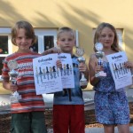 Bei der folgenden Siegerehrung zeigte sich Konrektorin Christine Fersch beeindruckt von der Leistung der Kinder, die trotz sommerlicher Hitze den ganzen Nachmittag konzentriert Schach gespielt haben. Danach wurden die Kinder einzeln nach vorne gerufen und durften sich einen Sachpreis aussuchen, die dank der großzügigen Spende des Elternbeirats zur Verfügung gestellt werden konnten. Außerdem gab es für alle Teilnehmer eine Urkunde und natürlich einen großen Applaus. Die besten Drei jeder Gruppe nahmen obendrein stolz ihre Pokale entgegen.