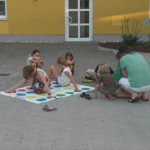 Nach dem anstrengenden Schachturnier gab es im Pausenhof Bratwurst- und Steaksemmeln zur Stärkung. Bei immer noch herrlichem Sommerwetter saß man gemütlich beisammen und die Kinder ließen den gelungenen Tag mit Fussball und Brettspielen ausklingen.