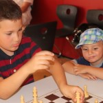 Den ein oder anderen brachte das ungewohnte Spiel mit der Schachuhr etwas aus dem Konzept und hin und wieder brach doch die Enttäuschung über eine verlorene Partie bei manchem Teilnehmer heraus. Aber die Tränen waren schnell getrocknet und es ging mit neuem Mut in die folgende Runde. So hielten alle Teilnehmer trotz der Anstrengung bis zum Turnierende durch wofür es bei der Siegerehrung einen donnernden Applaus von den Eltern gab.