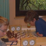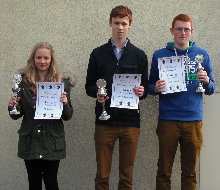 Sehr gut besetzt war die U16 zu denen sich noch drei U18-Spieler hinzugesellten. So kam es gleich in Runde eins zum vereinsinternen Duell zwischen Maximilian Lutter und Simon Drechsel, in dem Maxi von Anfang an besser stand und letztlich auch gewann. In Runde zwei nutzte Maxi den in der Mitte verbliebenen König für einen druckvollen Angriff und remisierte anschließend gegen Adrian Siegl (SW Nürnberg Süd). Am letzten Turniertag traf Maxi zunächst auf Kirill Myagkov (SC Noris Tarrasch Nürnberg) und behielt dank eines gut geführten Turmendspiels die Oberhand. Zum Abschluss traf er auf Valentin Krasotin (SW Nürnberg Süd) der in besserer Stellung ein Remisgebot akzeptierte. Damit sicherte sich Maxi mit 4/5 den Gesamtsieg und seinen ersten Kreismeisterschaftstitel.