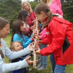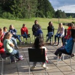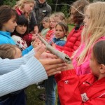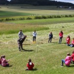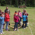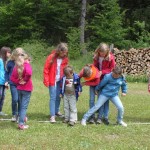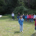 Er erklärte die Namen und Eigenarten unserer heimischen Sing- und Zugvögel, zeigte Fotos und imitierte verschiedene Vogelstimmen und zwar ziemlich gut. Mit gespitzten Ohren lauschten wir draußen auf der Wiese und versuchten die Vogelstimmen zuzuordnen. Danach ging´s dann ans Praktische mit diversen erlebnispädagogischen Spielen und Aufgaben. Die Kinder mussten sich dabei in die Lage einer Vogelschar versetzten und so verschiedene Stationen durchlaufen (Die Vogelschar sortiert sich, ein Ei wird in Sicherheit gebracht, eine Flugroute wird gefunden, ein Wurm wird ins Nest gelegt, gemeinsames Fliegen…), bei denen deutlich wurde, wie wichtig Absprachen, gut zuhören und Konzentration sind, natürlich kein Problem für Schachspielerinnen und solche die es werden wollen :-). So wurden alle Projekte erfolgreich bewältigt. Gegen 17 Uhr verabschiedete sich der Vogelexperte Martin Schmidt von uns und wurde von den Mädchensprecherinnen des SK Neumarkt mit einem Präsent verabschiedet.