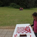 Bei den Vogelspielen konnten wir uns alle gegenseitig beschnuppern. Jetzt wurde es Zeit uns richtig kennenzulernen. Während David und André sich ums Anheizen des Grills kümmerten, stellten wir „Frauen“ uns gegenseitig vor und überlegten uns – wie jedes Jahr- Räuberinnennamen. Denn das traditionelle Räuberschachturnier sollte am nächsten Morgen stattfinden. Inspiriert von Radena Radiergummi füllte sich die „Räuberhöhle“ mit Eva Bleistift oder Victoria Spitzer. Küchenjunge David Kitzlig bekam den Namen vom Vorjahr, weil er der Grillmeister war und ist. Für Sebi wurde hin und her überlegt und die Wahl fiel auf den Namen Mausebär und ein leichtes Erröten erschien auf seinem Gesicht, was den Vorstand des Neumarkter Schachklubs wirklich süüüß aussehen ließ. André wurde ein Ameisenbär???!!!
