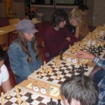 Maria Schilay und Daiana Burger trafen gleich in der ersten Runde aufeinander, obwohl die Turnierordnung in den ersten beiden Runden eigentlich keine vereinsinternen Paarungen vorsieht (gut – es wurde auch wieder munter die Buchholzsumme ansattt der Summenwertung als Drittwertung herangezogen…). Maria machte es mit zwei Mehrfiguren unnötig spannend indem sie ihren König in der Mitte ließ. Prompt legte sie Daiana einen Elfmeter auf, den diese aber nicht verwandelte und so setzte sich doch noch die Favoritin durch. Nach einem weiteren Sieg sah es für Maria auch in Runde drei gegen Fatima Youness (SF Bad Mergentheim) gut aus. Leider übersah Maria in einer Schlagkombination etwas und hatte mit einem Turm weniger keine Chance mehr. Mit zwei Siegen kämpfte sie sich bis auf Rang drei nach vorne, musste sich dann aber dem topgesetzten Alexander Brückner (SK Schweinfurt) geschlagen geben. Trotzdem war Rang drei noch in Reichweite, aber in der letzten Runde war auch Lorenz Hofmann (SV Lauf) zu stark und Maria wurde Achte. Daiana holte zwei Siege und belegte somit Platz 25.