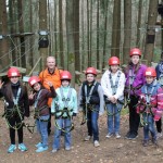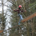 Danach ging es in die Erlebniswelt Velburg, wo als zweiter großer Programmpunkt der dortige Hochseilgarten auf uns wartete. Die sieben Mädels sowie unsere Frauenschachreferentin Angelika mussten dort fünf Parcoure mit steigendem Schwierigkeitsgrad bewältigen, was allen so viel Spaß machte, dass sie sich gleich nochmal in luftige Höhen aufschwangen.