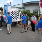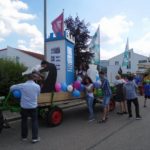Auch in diesem Jahr nahmen wir wieder am Neumarkter Volksfestzug teil. Das Motto lautete „Neumarkt – des san mia“, das wir ganz im Sinne unserer „Neumarkt spielt bunt“-Initiative zu „Neumarkt – des san mia und neue Freunde“ ergänzten. Denn die Schach-und-Domino-Truppe trommelte einige Leute zusammen, die sich die Schach-Ponchos überwarfen und gemeinsam mit uns am Umzug teilnahmen. Damit waren wir ein bunter Farbklecks unter den 100 Gruppen, die von über 25.000 Zuschauern mit viel Applaus bedacht wurden.