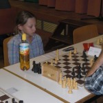 Lorenz setzte nach dem Erfolg am Vormittag gleich noch einen drauf und bezwang auch den Süder Werner Keller (1700). Durch aktives Figurenspiel eroberte er zwei Mehrbauern, die er trotz der Abwicklung in ein Endspiel mit ungleichfarbigen Läufern dank Freibauern auf beiden Flügeln zum Sieg ummünzte. Maxi dagegen musste sich Peter Weißmann beugen, da er in ausgeglichener Stellung in Zeitnot zwei Bauern einbüsste. Auch Eva wurde für eine schöne Partie nicht belohnt, dabei hatte sie gute Chancen auf Materialgewinn. Simon und Martin gewannen ihre Partien problemlos, während André in einem Springerendspiel mit gleichen Bauern doch noch eine Gewinnchance serviert bekam (O-Ton: „Handelfmeter in der Nachspielzeit“) und diese auch zu nutzen wusste. Thomas stand anfangs besser, übersah dann aber einen taktischen Schlag und verlor.