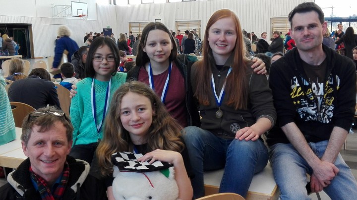 Bei den diesjährigen Bayerischen Schulschachmeisterschaften in Bindlach war das Willibald-Gluck-Gymnasium in der WK Mädchen am Start. Eva Schilay, Eva Herrmann, Nicole Mikulasch und Thea Harmel hatten wie im Vorjahr als Oberpfälzer Vize-Meister hinter dem Albrecht-Altdorfer-Gymnasium Regensburg einen Freiplatz bekommen. Diese wurden letztes Jahr Bayerischer Meister und die WGG-Mädels errangen einen bärenstarken dritten Rang. Eine Wiederholung dieses tollen Erfolgs war diesmal unwahrscheinlich und man strebte einen Mittelfeldplatz an. Über den Turnierverlauf kann leider nur wenig berichtet werden, da dieses Jahr alle Betreuer aus dem Turniersaal verbannt wurden und selbst die Spieler nach Beendigung der Partien umgehend raus mussten und keine Gelegenheit bekamen mit ihren Teamkollegen mitzufiebern. Nach neun Runden wurden die WGG-Mädels mit 9:9 Punkten Sechster. Zwei Punkte mehr gleichbedeutend mit dem anvisierten fünften Rang wären noch möglich gewesen.